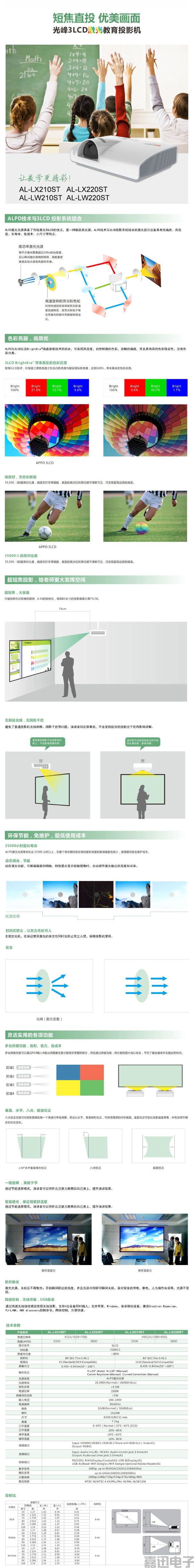 光峰(appotronics)AL-LX210ST 激光投影機(jī) 3300流明 3LCD顯示技術(shù) 手動變焦 1024*768dpi